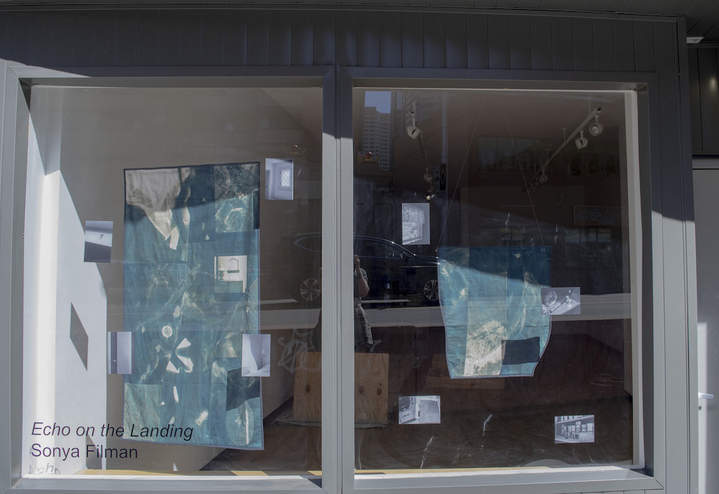 Echo on the Landing proceeds from an effort to find possibility in the space of loss, and to conjure connection in the present. Gathering traces of treasured keepsakes, fragments of family home, and slivers of a shifting landscape in a cyanotype quilt, Filman seeks to contend with the deaths of her grandparents.