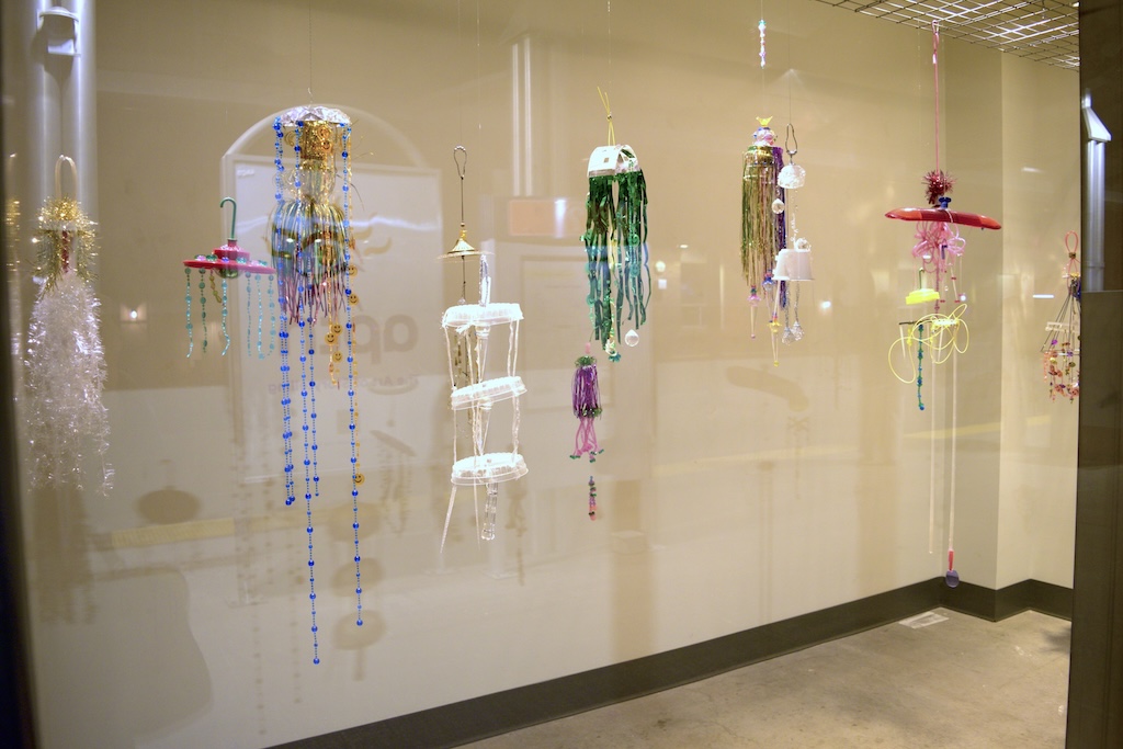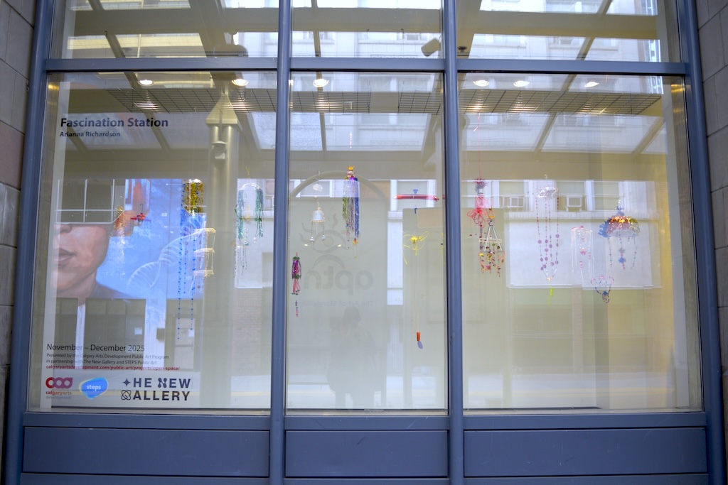 Fascination Station is a satellite exhibition coinciding with Arianna Richardson’s main space exhibition “Surface all the way through” in the CADA Open Spaces gallery located at the Centre Street LRT platform. This extension of the work (supported by TNG, CADA, and STEPS Public Art) includes fascinators created by members of the public during the Fascination Station Workshop at TNG (graciously funded by STEPS Public Art).