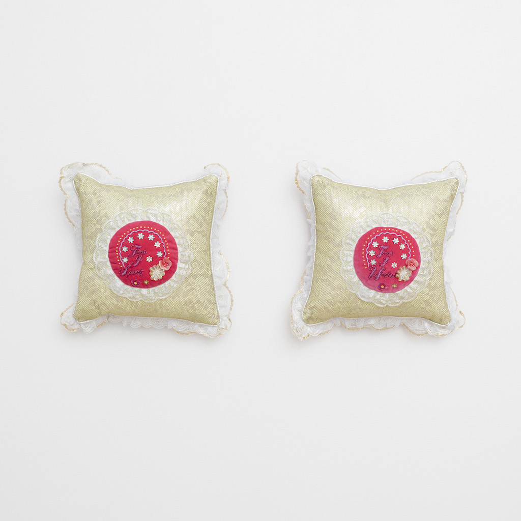 靠枕最初只是我的一種執念,後來卻成了一個隱喻,象征著我如何嘗試將生命中那些艱難的事件與情緒分門別類、加以整理與消化。它們是熟悉的家居物品的荒誕仿制品,旨在提供裝飾性的消遣和慰藉, 一個可以承載與包容我不願面對之物的所在,一種關于“落腳之處”的幻想性願景。